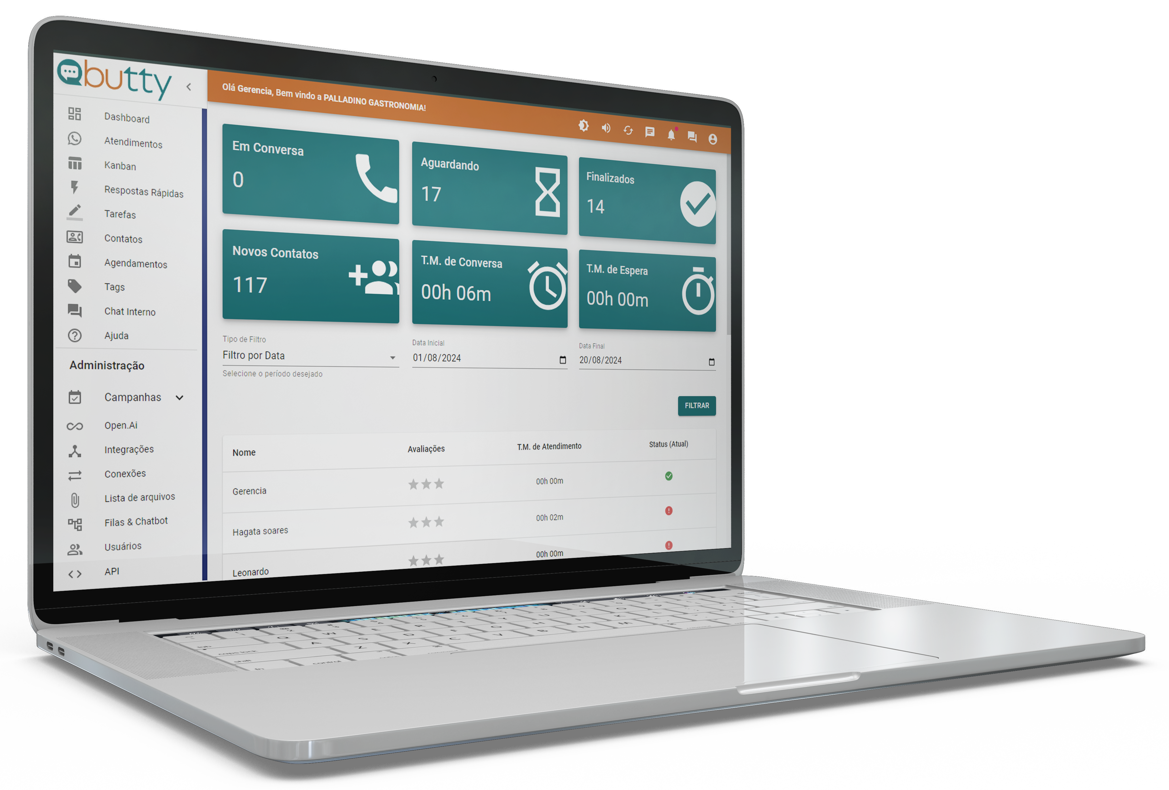 Além disso, você pode acompanhar os atendimentos em tempo real e gerar relatórios sobre o desempenho do Butty. Se você estiver interessado, temos planos que se adaptam a diferentes necessidades!